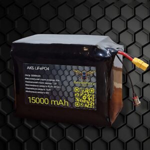 Повна ємність 15 Ah (1152wh) Номінальна напруга 76.8 V Діапазон робочих напруг 67.2–82.2 (87,6) V Тип елементів 33140 Виробник елементів EVE Циклічний ресурс до 4000 циклів Тип з’єднання елементів 24S1Р Силові дроти AWG 10 Роз’єм живлення XT90 H-F AMASS Плата Захисту BMS JK 40A Номінальний струм заряду 7,5 А (05c) Максимальний струм заряду 15 А (1c) Максимальний струм розряду 45 A (3c) Зварка нікельована стрічка 0,2 х 15 мм у 2 шари Зібрана в Холдерах