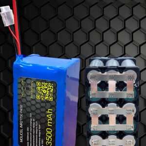 Повна ємність 12 Ah Номінальна напруга 21,6 V Діапазон робочих напруг 16 – 25,2 V Тип елементів 21700 Тип з’єднання елементів 6S3Р Силові дроти AWG 12 Роз’єм живлення XT60 H-F AMASS Балансувальний роз’єм JST XH 2.54мм 7 pin Номінальний струм заряду 6 А Максимальний струм заряду 16 А Максимальний струм розряду 105 A Зварка мідна стрічка 0,2 х 10 мм Зібрані в холдерах Габарити 140 x 70 x 75 мм Вага 1250 г