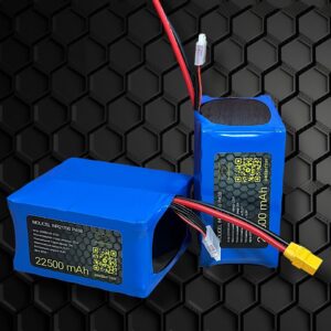 Повна ємність 22,5 Ah Номінальна напруга 21,6 V Діапазон робочих напруг 16 – 25,2 V Тип елементів 21700 Тип з’єднання елементів 6S5Р Силові дроти AWG 10 Роз’єм живлення XT60 H-F AMASS Балансувальний роз’єм JST XH 2.54мм 7 pin Номінальний струм заряду 10 А Максимальний струм заряду 22,5 А Максимальний струм розряду 225 A Зварка мідна стрічка 0,3 х 10 мм Зібрані в холдерах Габарити 138 x 117 x 75 мм Вага 2250 г